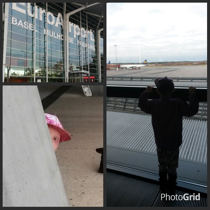 Vi blev hämtade i taxi klockan 11 i torsdags och flyget tog oss till Munchen där vi bara var nere på marken för att byta till flyget som tog oss till Basel. Flygplatsen där har en schweizisk och en fransk sida och vi råkade gå fel och hamna i Schweiz istället för i Frankrike där bussen skulle avgå för att föra oss tillbaka till Freiburg i Tyskland. Det gick bra, vi hade bara tagit fel trappa… så det blev många länder på kort tid och allt gick mycket smidigt.